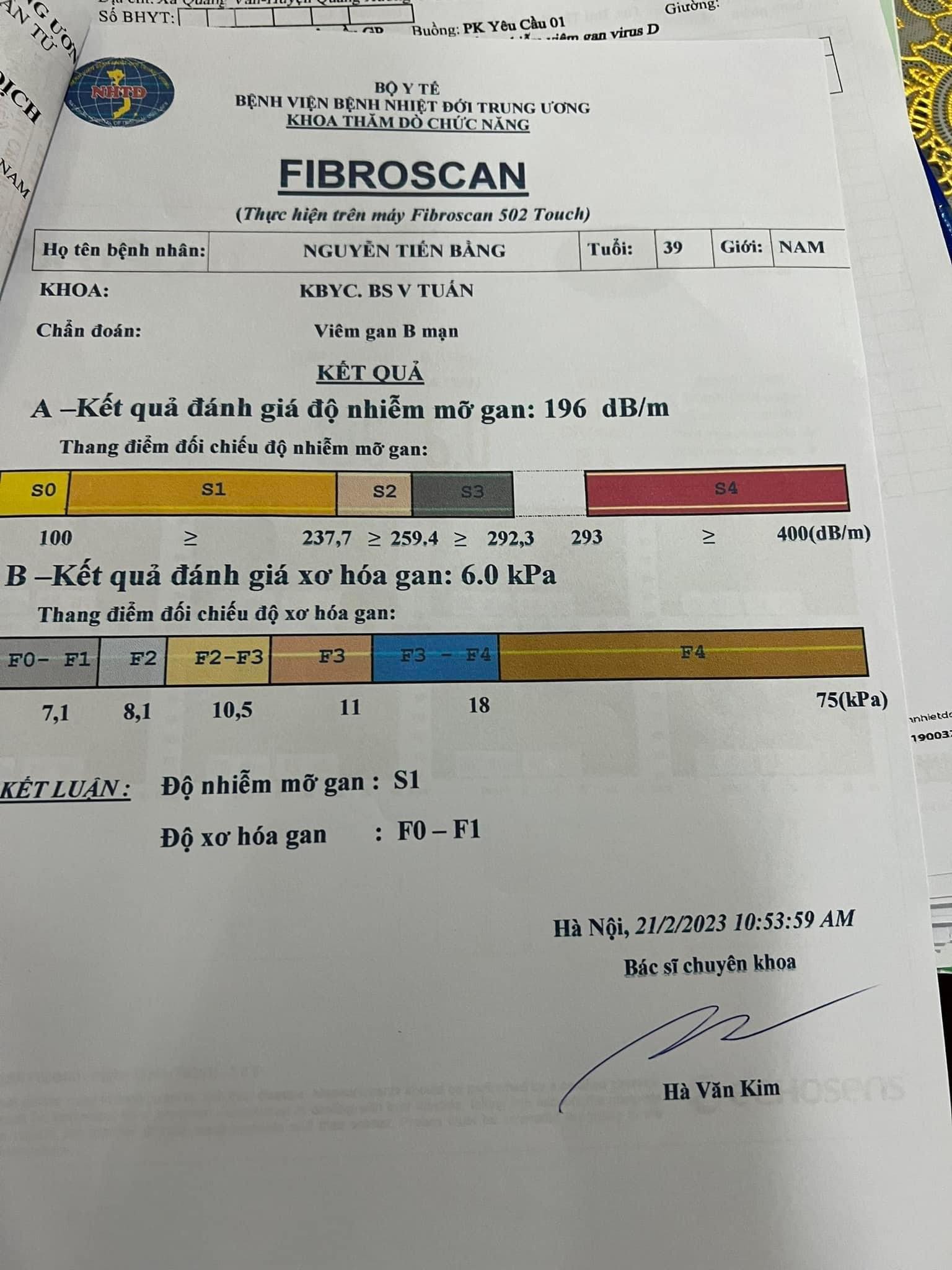 Mình cũng được nhiều báo về bs khoa. Cũng nghe nhiều người giới thiệu đến trị bệnh. Phát hiện viêm gan B gần 4 năm nay dùng thuoc kháng virus mỗi ngày. Giờ lại thêm xơ gan F2 thấy hoang mang quá