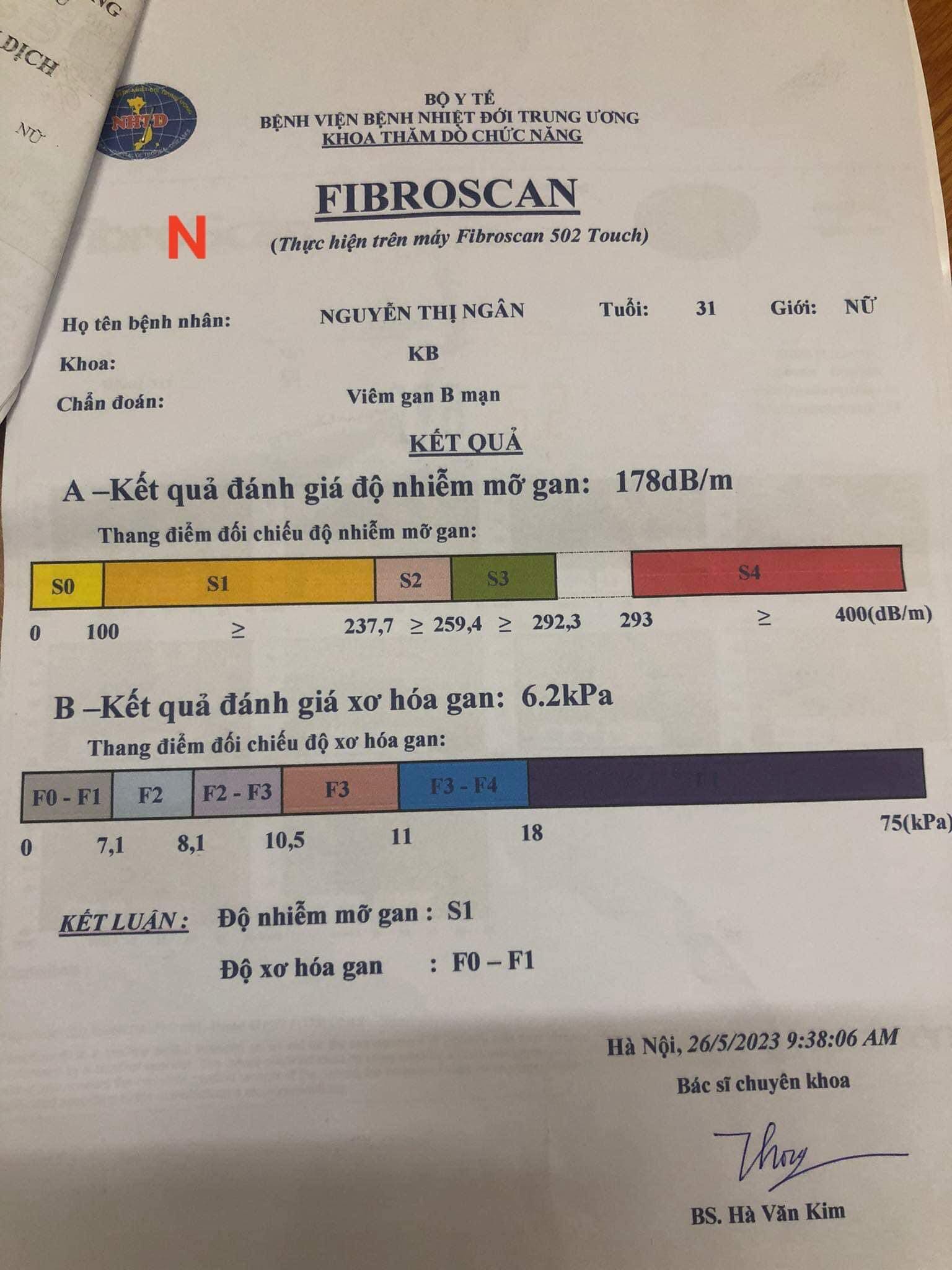 E bị lây vgB từ mẹ (từ lúc sinh mà k biết)sau này khi học đại học e hiến máu mới biết , 12/2020e ktra sức khỏe định kỳ và xét nghiệm HBV-DAN Kq: 1,1×10^4. Bs kê Hepbest 25mg và Hb digic, bổ gan boganic uống 3 tháng. Kq 5/5/2022 xét nghiệm lại 4,6×10^4. Và đo đàn hồi xơ hóa gan F4. Xin bác sĩ giúp em trị bệnh này
